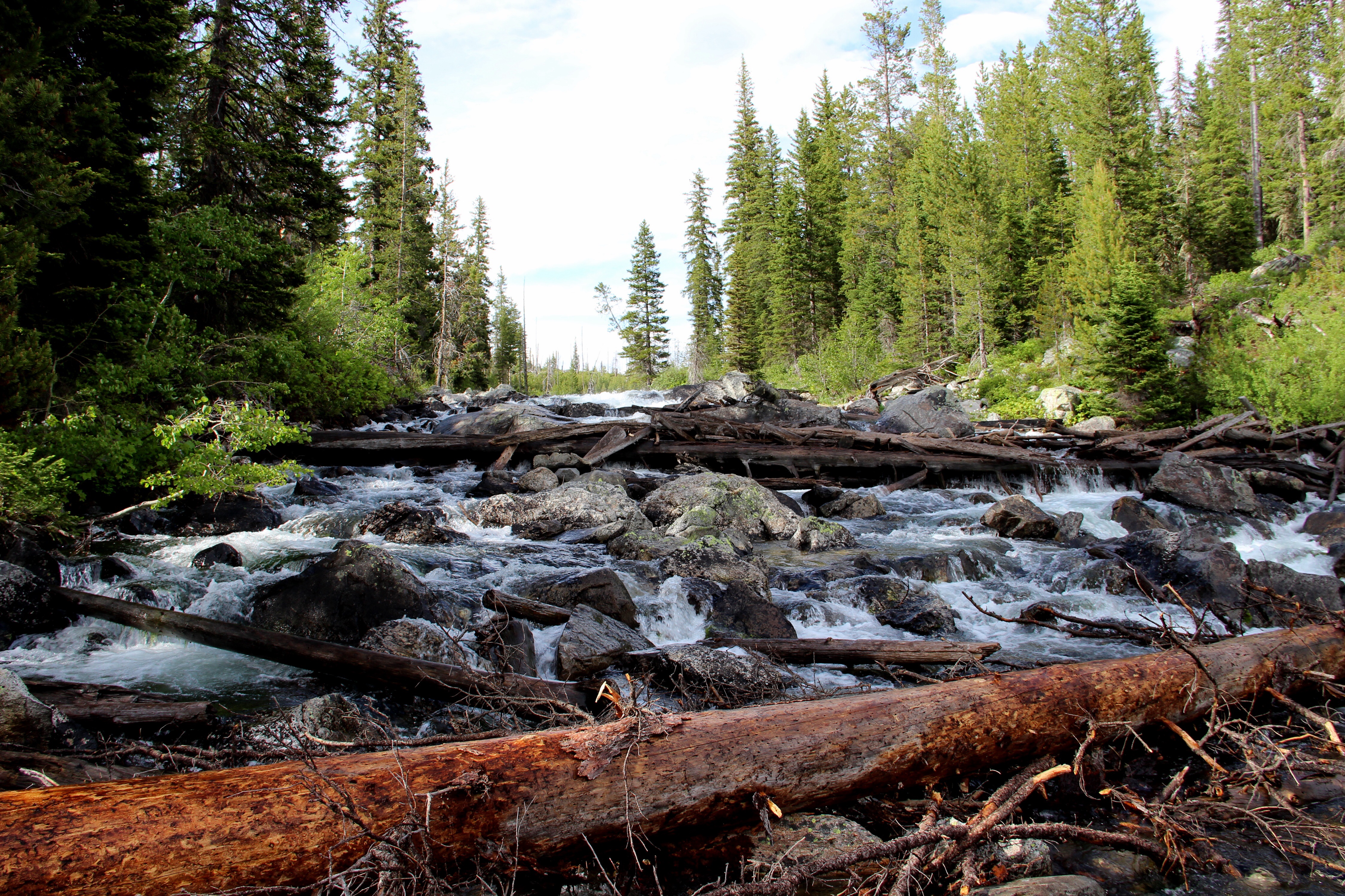 The next day we set out to fish both for sport and for dinner. Luckily we were successful on both accounts! We started off in Jackson Lake and each captured a good sized lake trout. Athena has a knack for snagging her line just close enough to shore for me to decide to remove my shoes and wade into the 50 degree water to unhook it. She even managed to snag the fish she caught on a piece of driftwood which I’d have to retrieve in order for us to eat. But really though, I’m just happy she enjoys fishing with me. The views from our spot were awesome, simple pleasures make me smile. We left this spot and headed to the stream which feeds Jenny lake. Here there was a large waterfall which many fish congregated below to feed. We caught both cutthroat and brook trout at this spot, the fish were not in short supply. At one point I hooked into a very large fish who broke water, but in doing so he managed to shake the lure free. We both kind of stared at each other because this guy truly was the big one. Until I return and capture him, it’ll be the one that got away.
